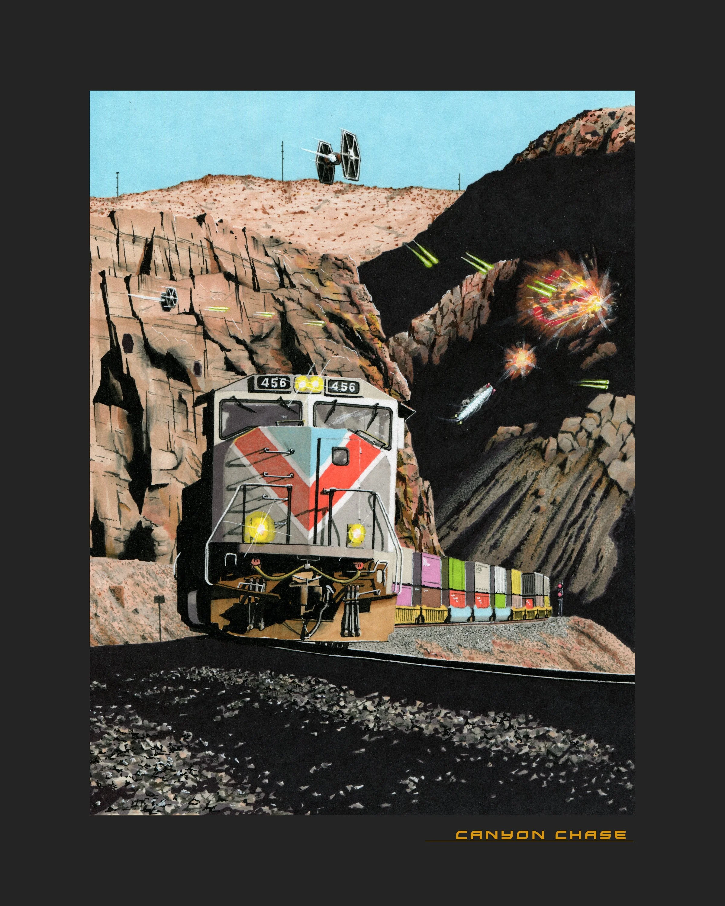 As I explore the limits of colored markers in my work, I attempt to make a place for that engineer in his optimistic vision of the future. Today, many consider railroading an industry of the past, and yet it is still unmatched as a land hauler. I believe as man continues to push towards the next frontier, the train engineer will continue to be with us to help supply mankind’s endeavors.